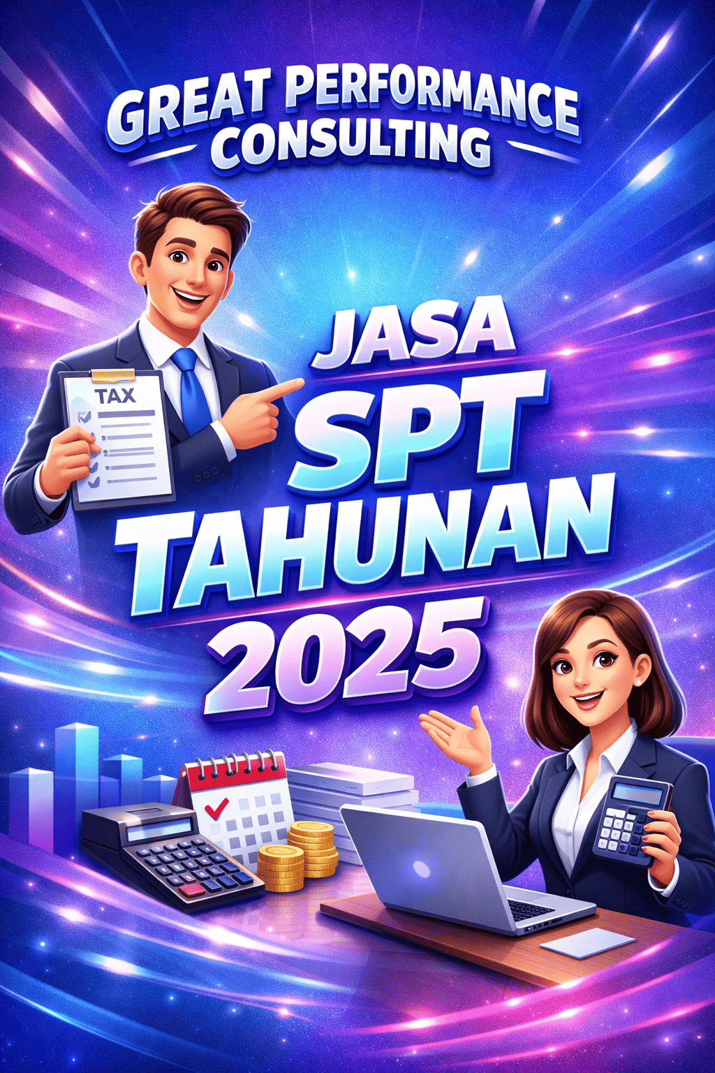 Dalam menghadapi kewajiban pelaporan pajak yang semakin kompleks, Great Performance Consulting hadir untuk memberikan pendampingan profesional dan terpercaya dalam pelaporan SPT Tahunan Badan & Perorangan 2025.